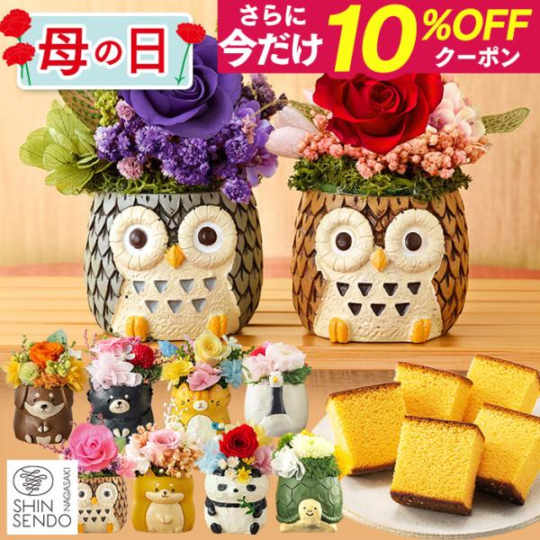 敬老の日 プレゼント お菓子 花 21 メッセージ 80代 70代 祖母 施設 孫 和菓子 セット 犬 動物 ギフト フクロウ 犬プリザセット カステラ 0 3号 Krcc Animal Preza カステラ専門店 長崎心泉堂 通販 Yahoo ショッピング
